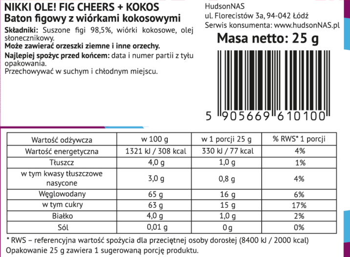 Nikki Ole! Fig Cheers to pyszna przekąska na bazie suszonych fig, wzbogacona wiórkami kokosowymi, bez dodatku cukru, konserwantów i sztucznych składników.